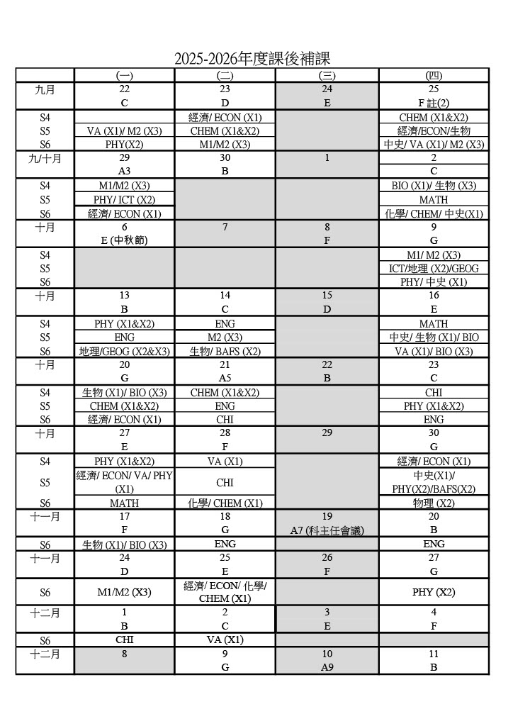 2025-2026第一學期補課安排